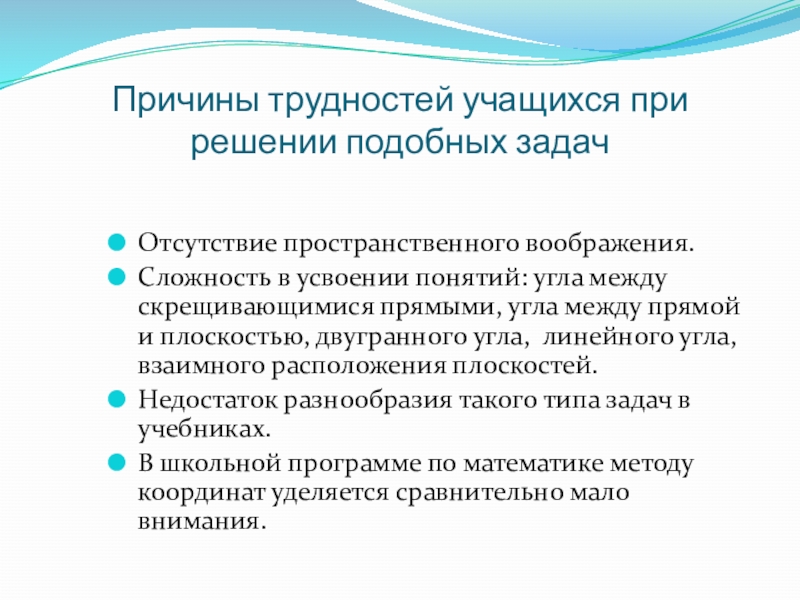 Слайд 7Причины трудностей учащихся при решении подобных задач