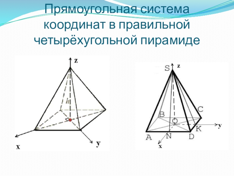 Слайд 20Прямоугольная система координат в правильной четырёхугольной пирамиде