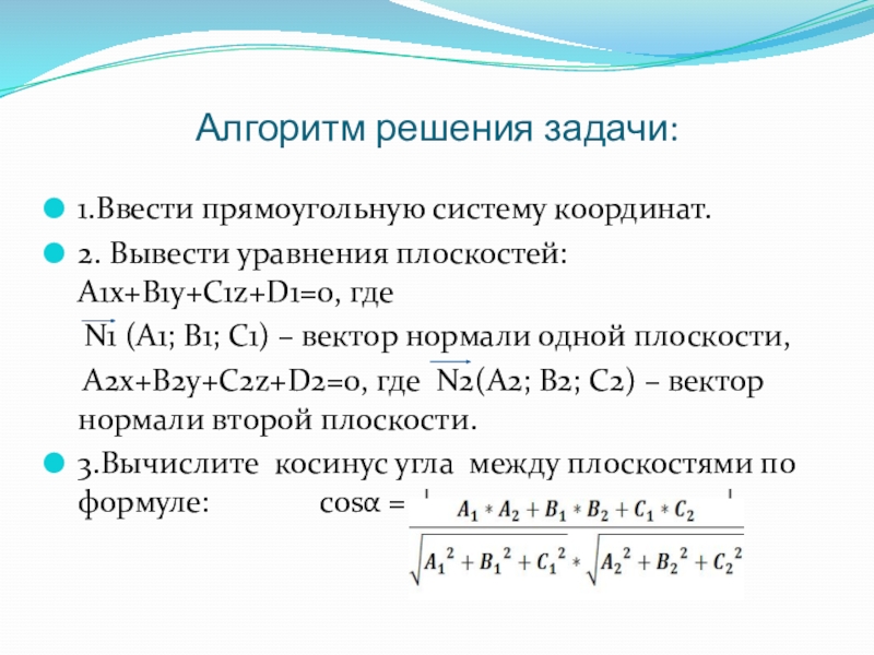 3.Вычислите косинус угла между плоскостями по формуле: сosα = | |
