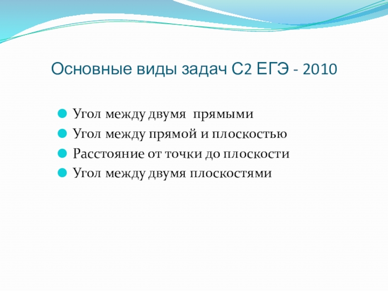 Слайд 6Основные виды задач С2 ЕГЭ - 2010