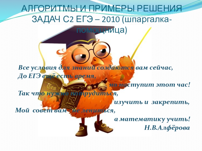 АЛГОРИТМЫ И ПРИМЕРЫ РЕШЕНИЯ ЗАДАЧ С2 ЕГЭ – 2010 (шпаргалка-помощница)