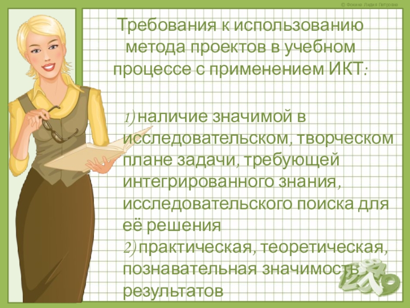 Требования к использованию метода проектов в учебном процессе с применением ИКТ: