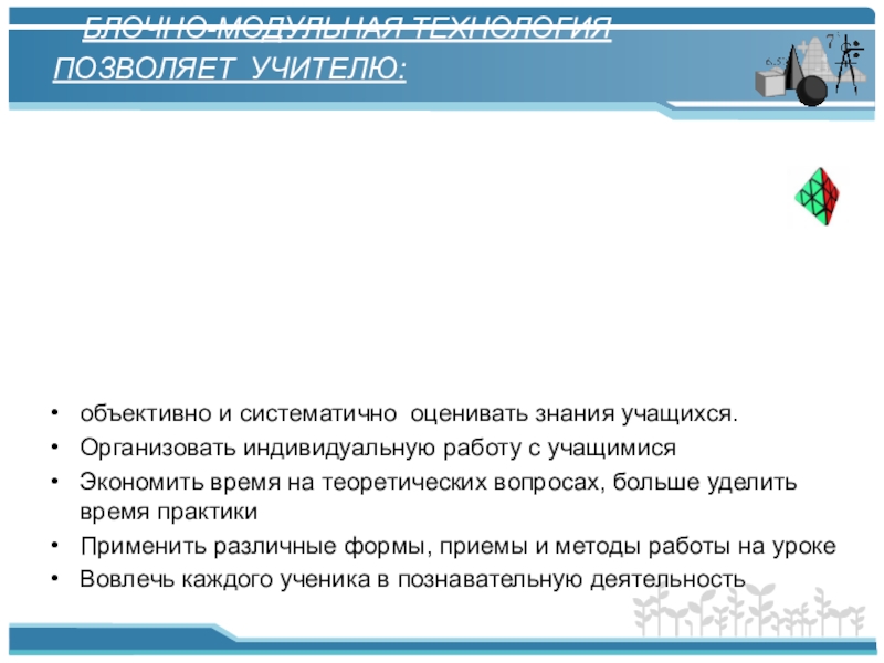 БЛОЧНО-МОДУЛЬНАЯ ТЕХНОЛОГИЯ ПОЗВОЛЯЕТ УЧИТЕЛЮ: