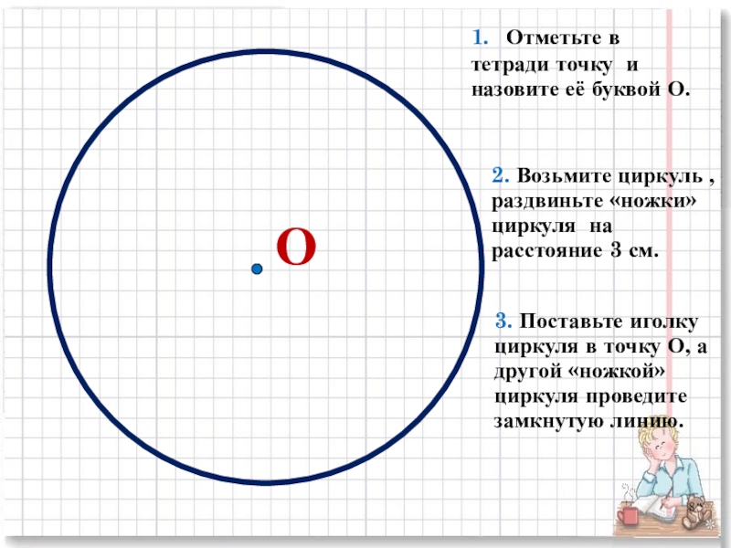 3. Поставьте иголку циркуля в точку О, а другой «ножкой» циркуля проведите замкнутую линию.