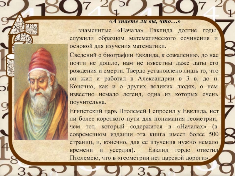 Слайд 6«А знаете ли вы, Задачу Евклида (III век до н. э.)»