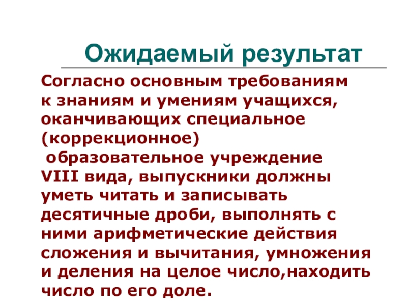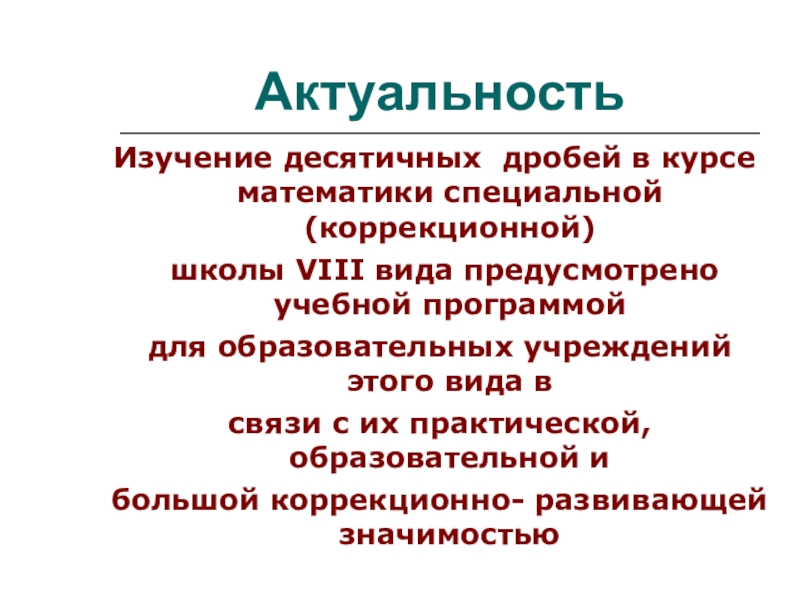 Изучение десятичных дробей в курсе математики специальной (коррекционной)