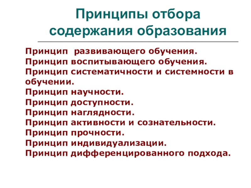Слайд 6Принципы отбора содержания образования