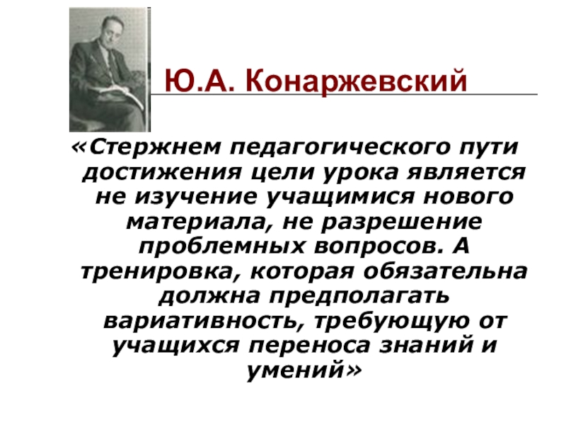 учащимися нового материала, не разрешение проблемных вопросов. А тренировка, которая обязательна должна предполагать вариативность, требующую от учащихся переноса знаний и умений»