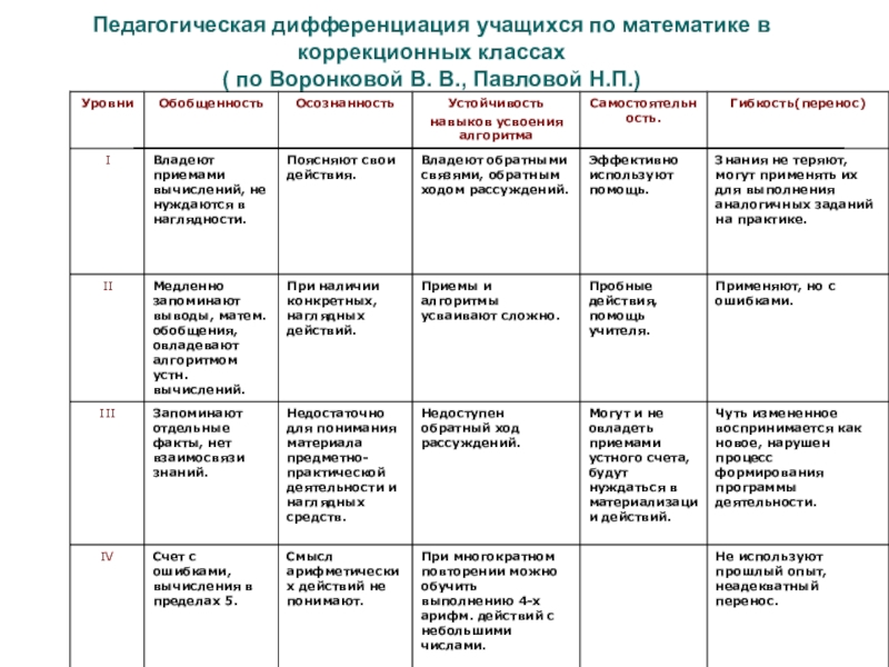 Слайд 15Педагогическая дифференциация учащихся по математике в коррекционных классах