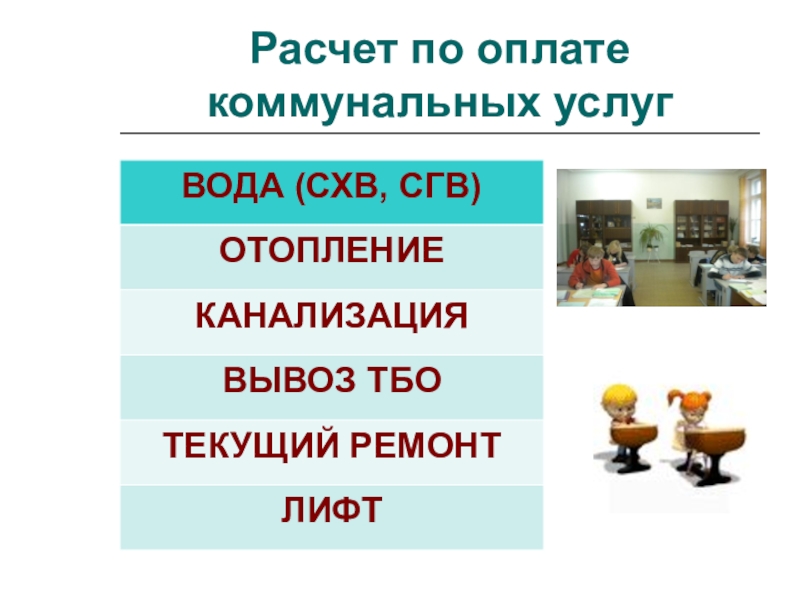 Слайд 22Расчет по оплате коммунальных услуг