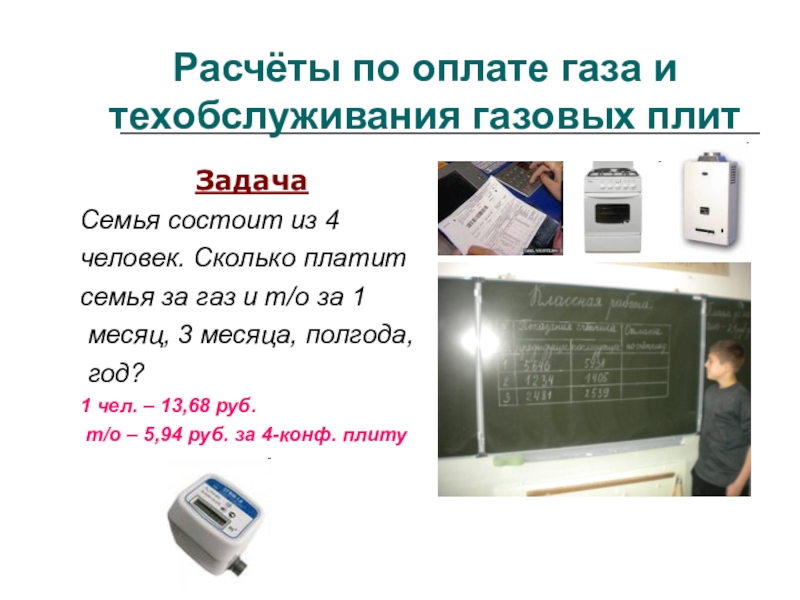 Слайд 20Расчёты по оплате газа и техобслуживания газовых плит