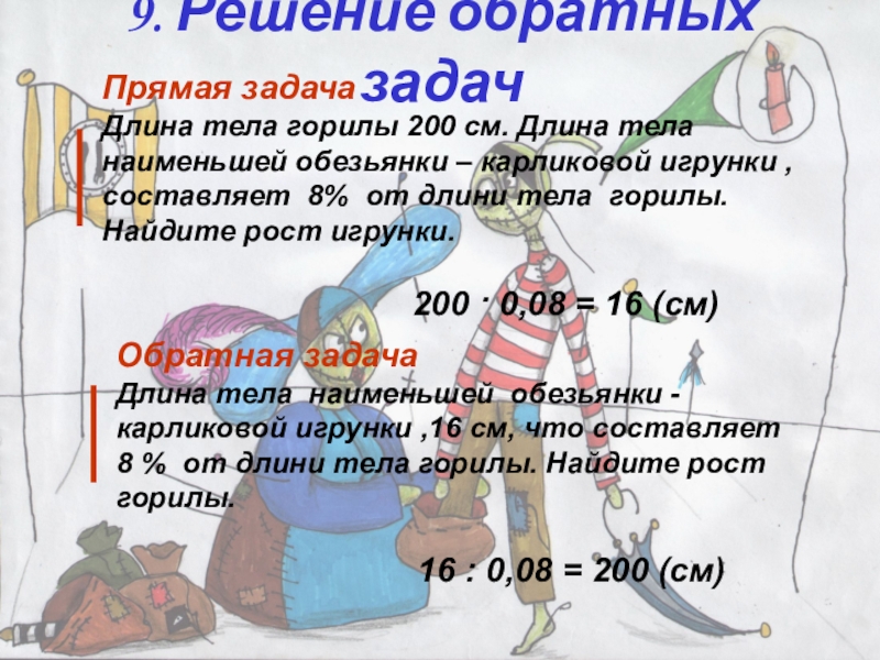 Длина тела наименьшей обезьянки - карликовой игрунки ,16 см, что составляет 8 % от длини тела горилы. Найдите рост горилы.