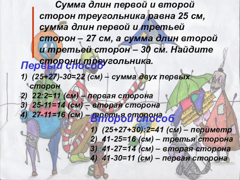 1) (25+27+30):2=41 (см) – периметр