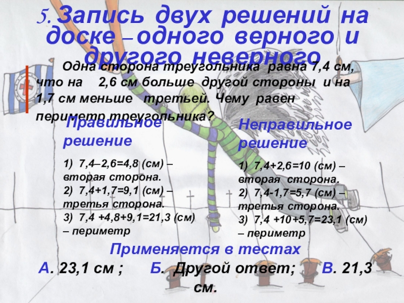 3) 7,4 +4,8+9,1=21,3 (см) – периметр