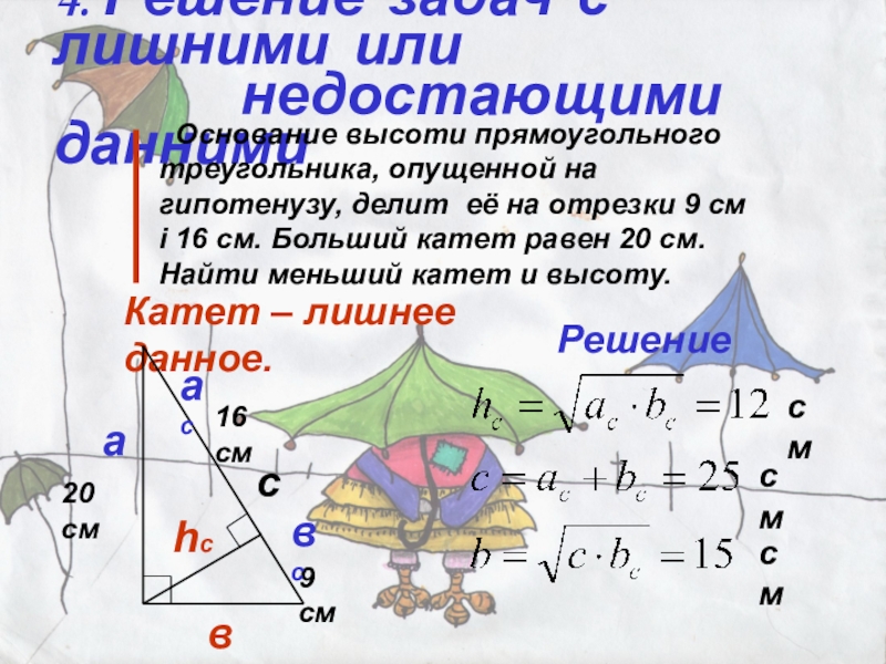 Катет – лишнее данное.
