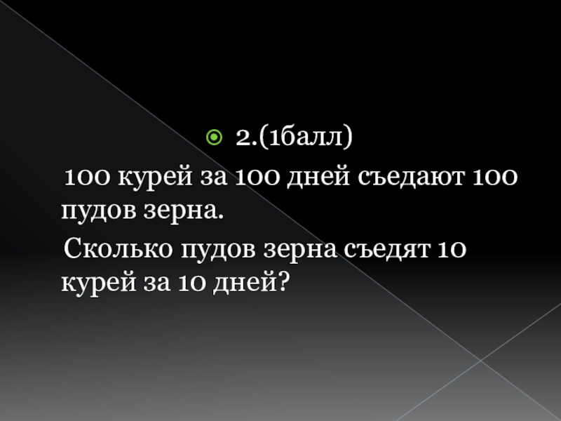 Сколько пудов зерна съедят 10 курей за 10 дней?