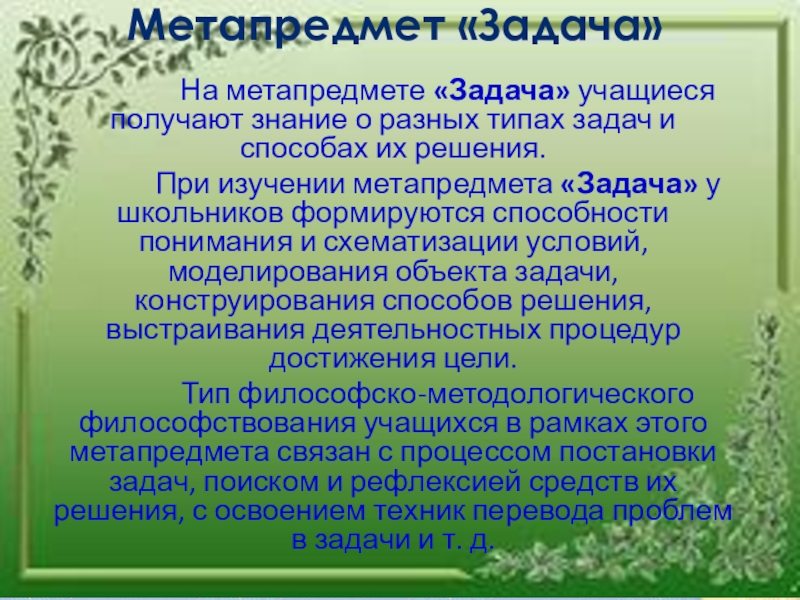 На метапредмете «Задача»