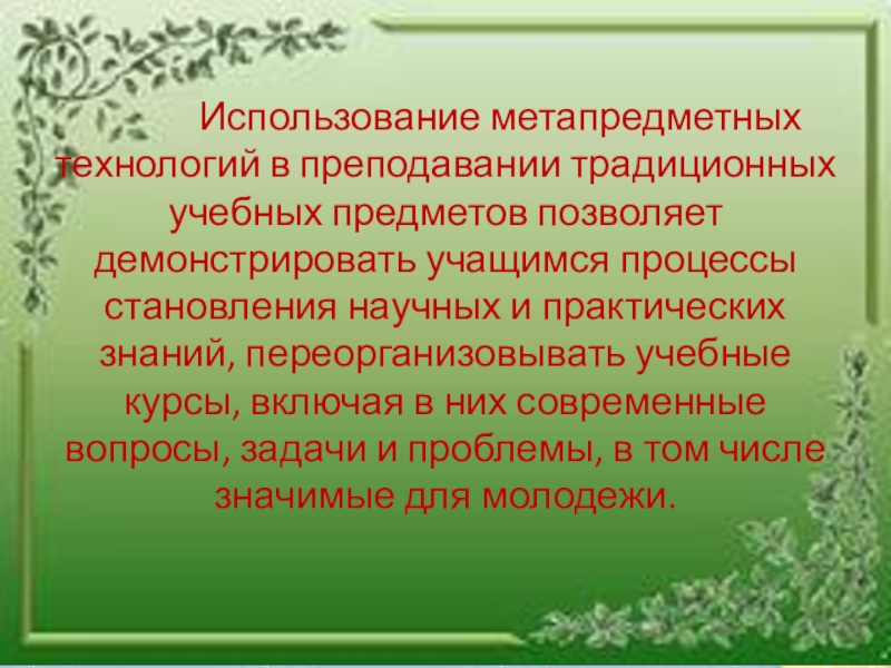 Слайд 13 Использование метапредметных технологий в преподавании традиционных