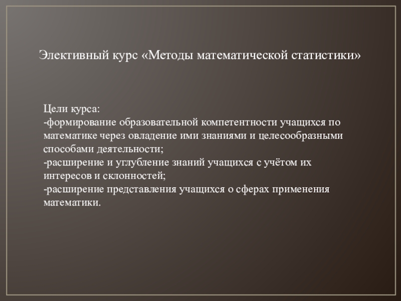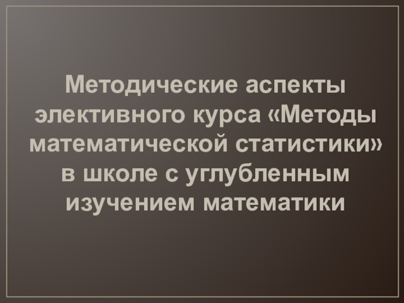 Слайд 1Методические аспекты элективного курса «Методы математической статистики» в школе с углубленным