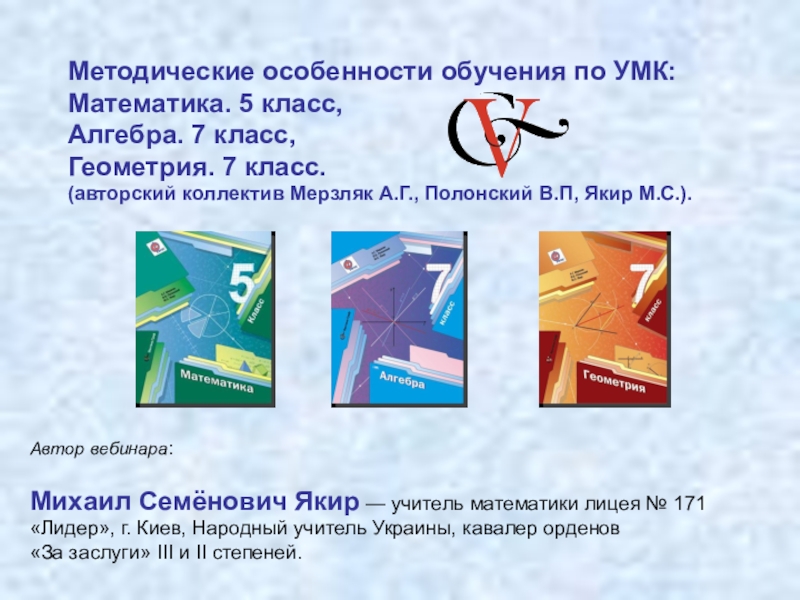 Михаил Семёнович Якир — учитель математики лицея № 171 «Лидер», г. Киев, Народный учитель Украины, кавалер орденов