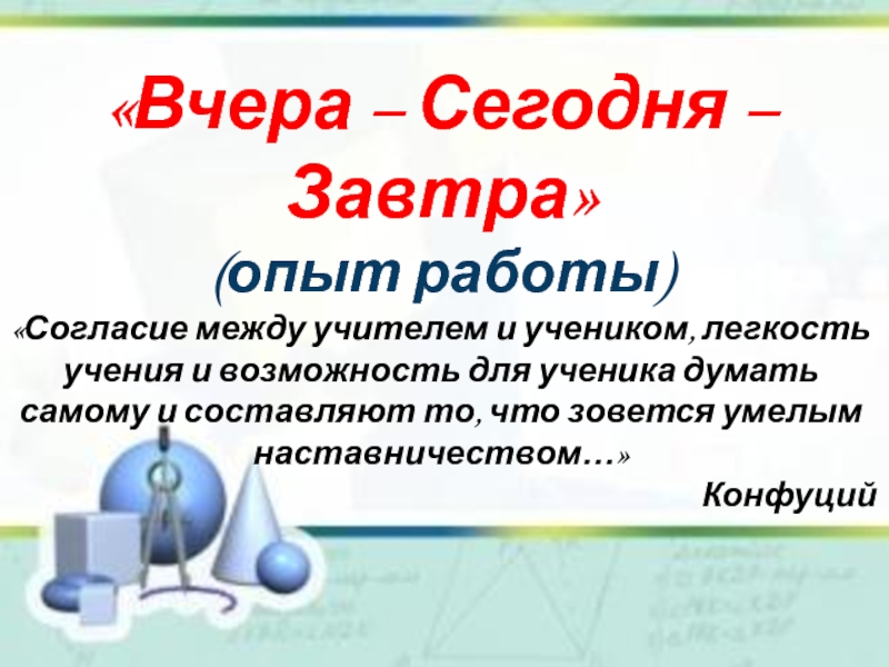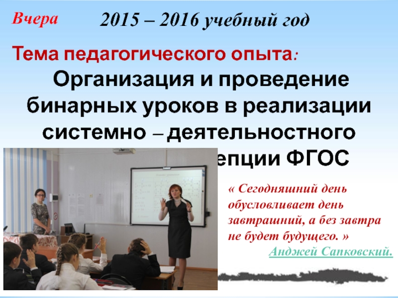 « Сегодняшний день обусловливает день завтрашний, а без завтра не будет будущего. »