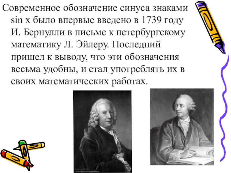 Слайд 9Современное обозначение синуса знаками sin x было впервые введено в 1739