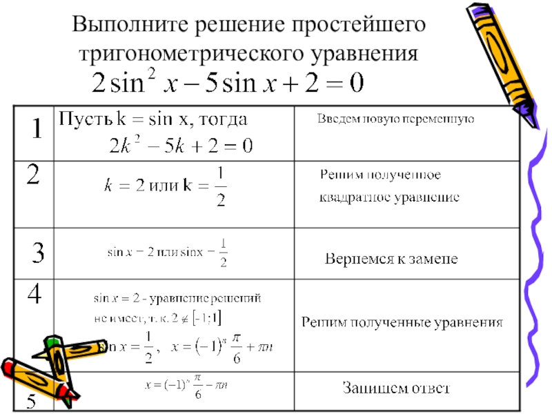 Слайд 15Выполните решение простейшего тригонометрического уравнения