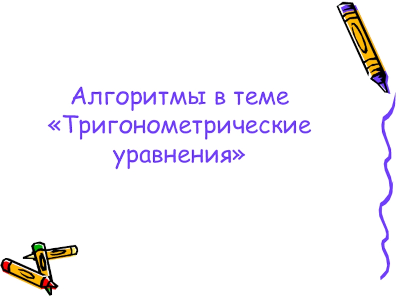 Слайд 14Алгоритмы в теме «Тригонометрические уравнения»