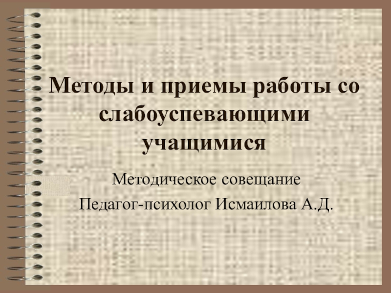 Слайд 1Методы и приемы работы со слабоуспевающими учащимися