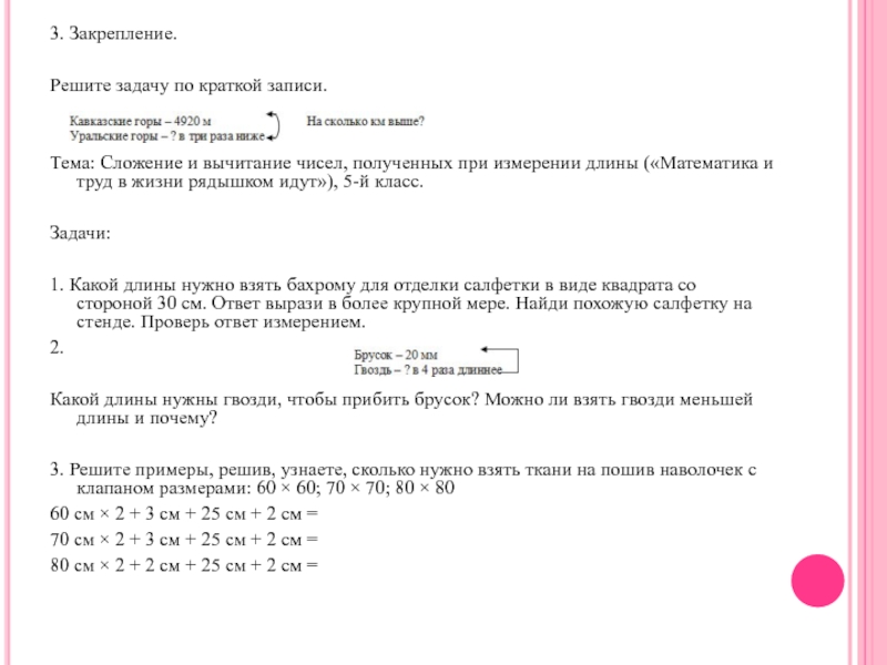 при измерении длины («Математика и труд в жизни рядышком идут»), 5-й класс.