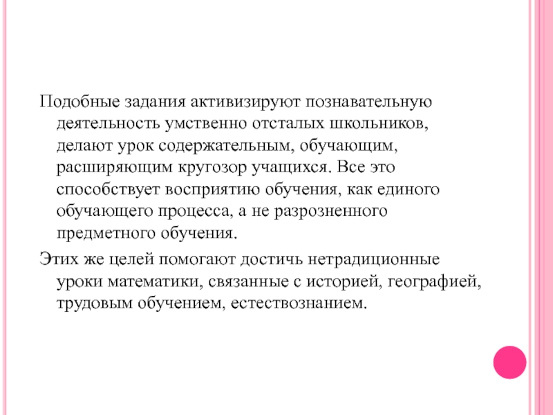 Слайд 8Подобные задания активизируют познавательную деятельность умственно отсталых школьников, делают урок содержательным,