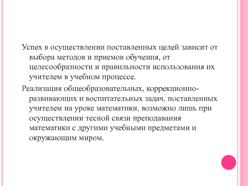 Слайд 3Успех в осуществлении поставленных целей зависит от выбора методов и приемов