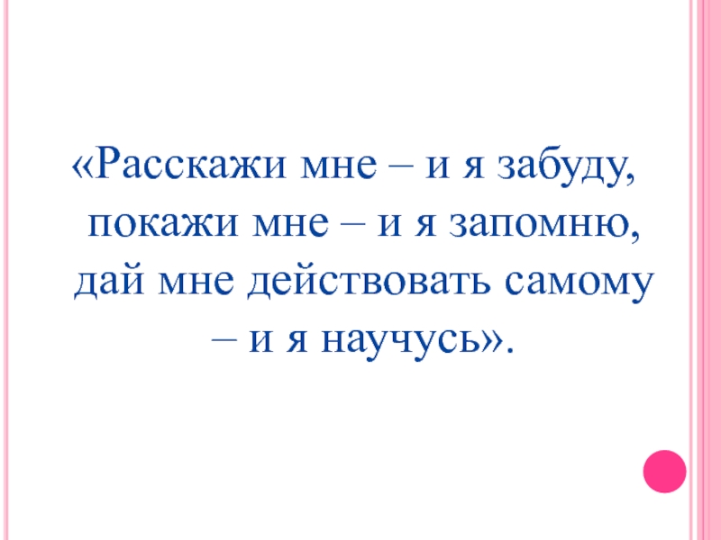 Слайд 15«Расскажи мне – и я забуду, покажи мне – и я