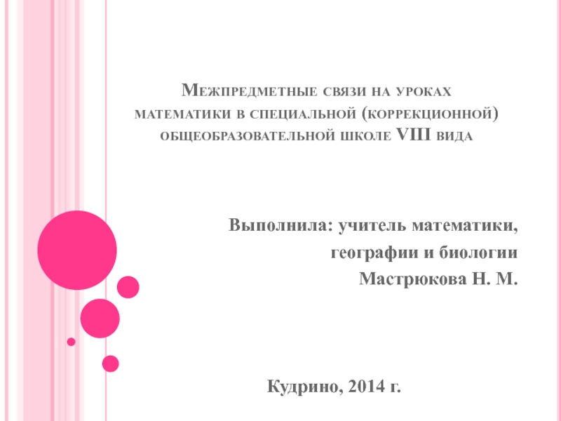 Слайд 1Межпредметные связи на уроках математики в специальной (коррекционной) общеобразовательной школе VIII