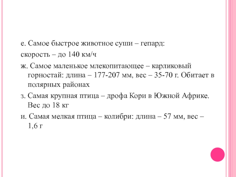 и. Самая мелкая птица – колибри: длина – 57 мм, вес – 1,6 г
