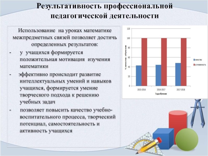 Слайд 12Использование на уроках математике межпредметных связей позволяет достичь определенных результатов: