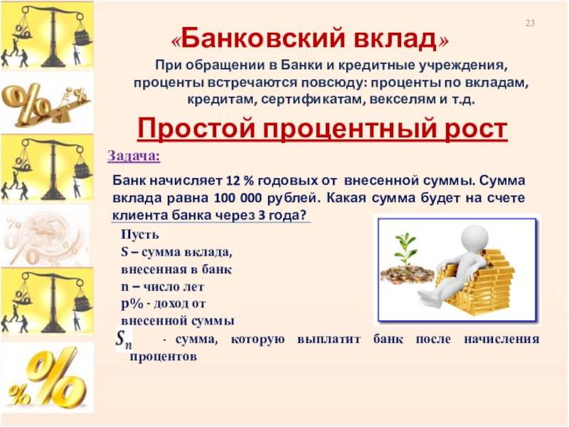 S – сумма вклада, внесенная в банк