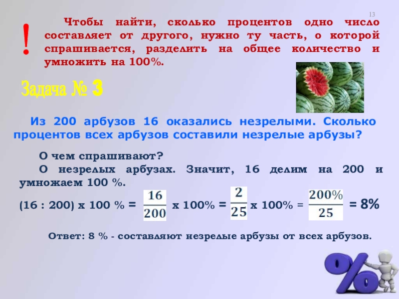 О незрелых арбузах. Значит, 16 делим на 200 и умножаем 100 %.
