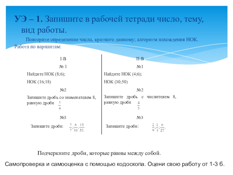 Самопроверка и самооценка с помощью кодоскопа. Оцени свою работу от 1-3 б.