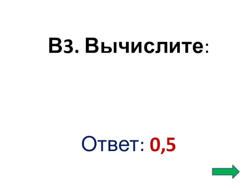 В3. Вычислите:Ответ: 0,5
