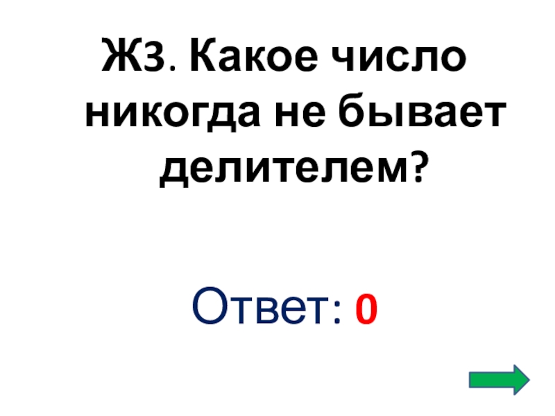 Слайд 37Ж3. Какое число никогда не бывает делителем?