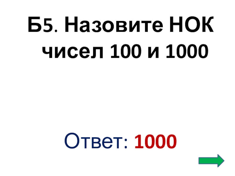 Слайд 10Б5. Назовите НОК чисел 100 и 1000