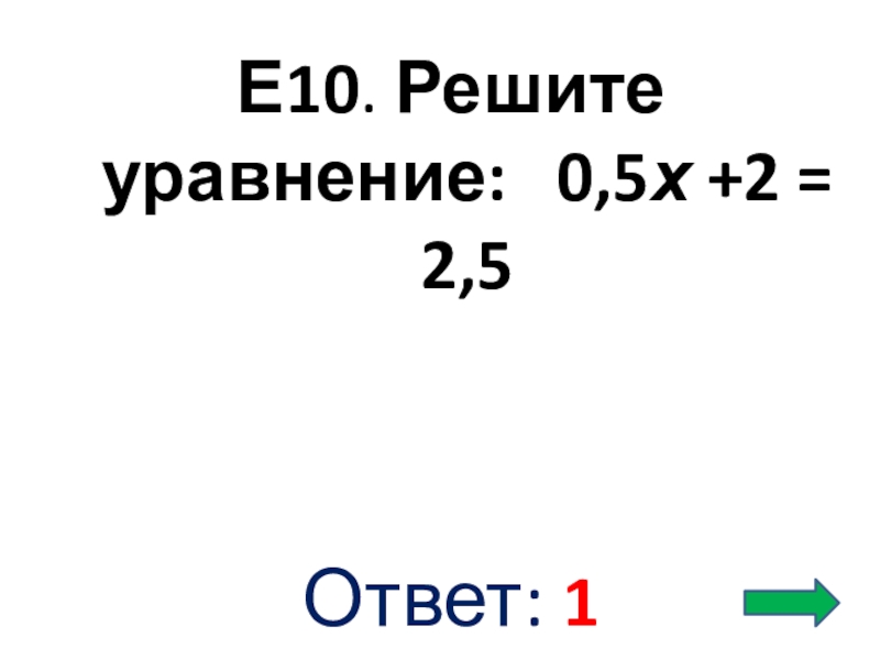 Слайд 35Е10. Решите уравнение: 0,5х +2 = 2,5