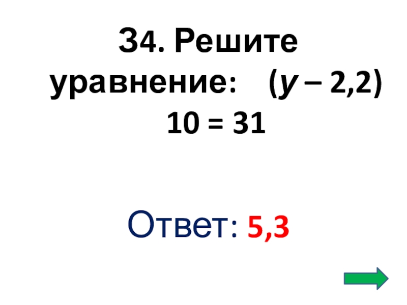 Слайд 43З4. Решите уравнение: (у – 2,2) 10 = 31