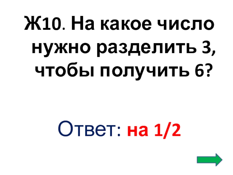 Слайд 41Ж10. На какое число нужно разделить 3, чтобы получить 6?