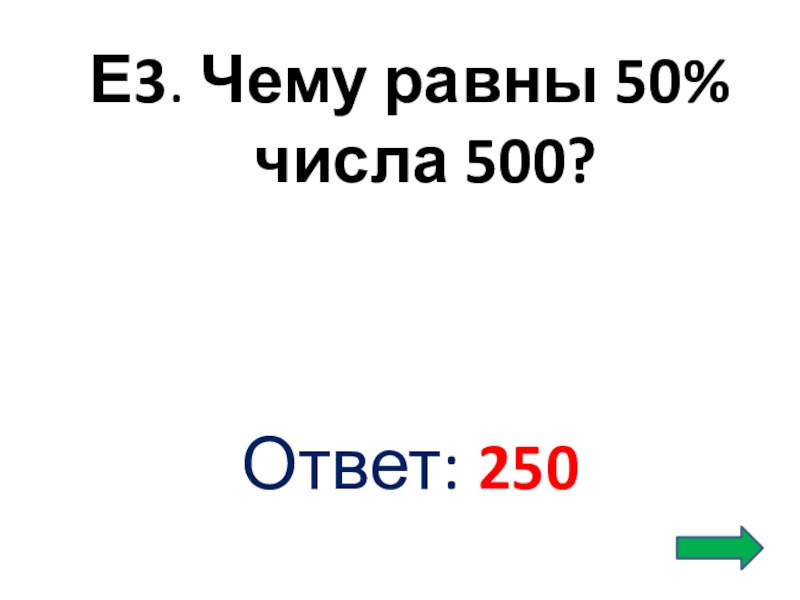 Слайд 31Е3. Чему равны 50% числа 500?