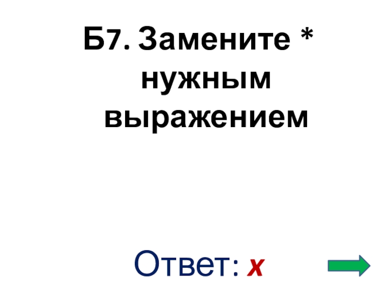 Слайд 12Б7. Замените * нужным выражением