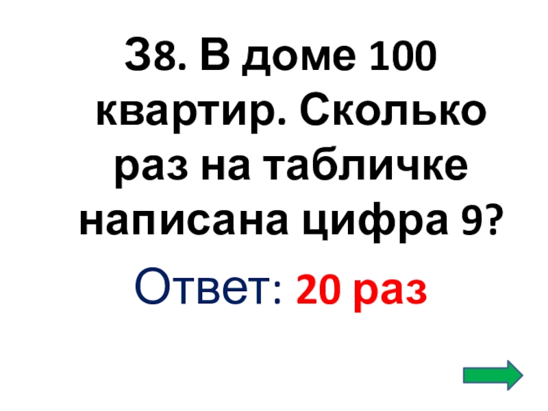 Слайд 46З8. В доме 100 квартир. Сколько раз на табличке написана цифра