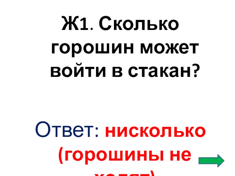 Ж1. Сколько горошин может войти в стакан?Ответ: нисколько (горошины не ходят)