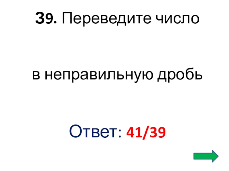 З9. Переведите число в неправильную дробьОтвет: 41/39